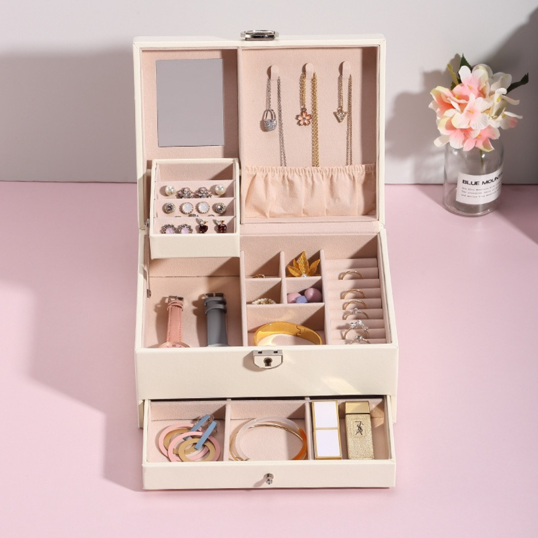 New leather jewelry box Korean jewelry storage box monochrome temperament multi-layer high-capacity jewelry box sp01153