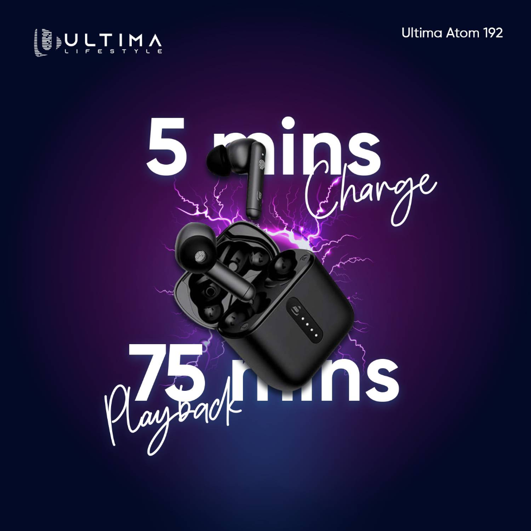 Ultima Atom 192 Bluetooth Truly Wireless Earbuds with mic, 42H Playtime, Beast Mode(Low Latency Upto 60ms) for Gaming, ENx Tech, ASAP Charge, IWP, IPX4 Water Resistance