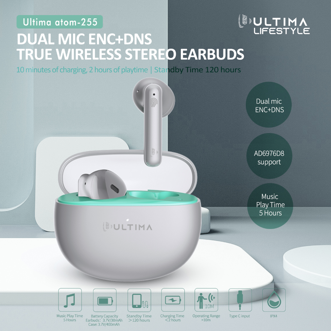 Drivers- Delve into the Ultima Signature Sound on Ultima Atom 255 TWS earbuds courtesy its 12mm audio drivers.